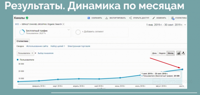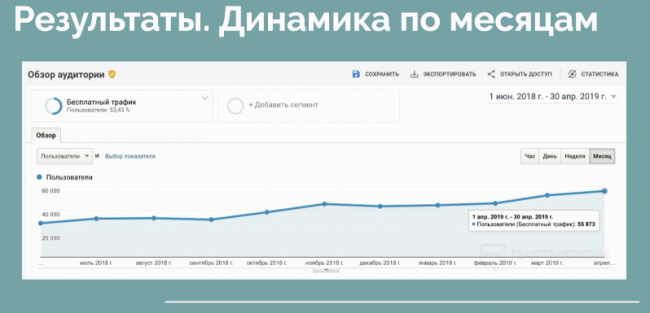 Ключевыми факторами успеха в этом кейсе стала обратная связь с владельцем площадки, который помог качественно погрузиться в нишу и работа с контентом.