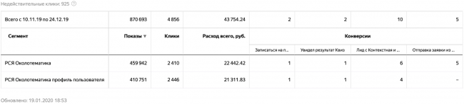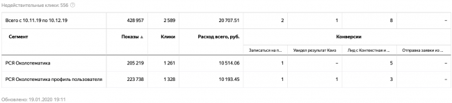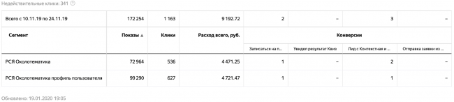 Яндекс рекомендует в таких экспериментах в ключевых целях указывать не макроконверсию (покупка товара или отправка заявки), а микроконверсии (добавление в корзину или клик на помещение). В нашем эксперименте мы решили использовать в расчетах только конечную макроконверсию, так как микроконверсии не показывали конкретную эффективность того или иного сегмента.