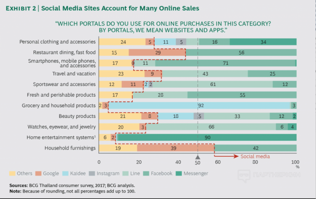 Обращаясь к данным Boston Consulting Group можно сделать вывод, что наиболее популярными площадками для интернет-шоппинга являются FB, FB мессенджер и Line.