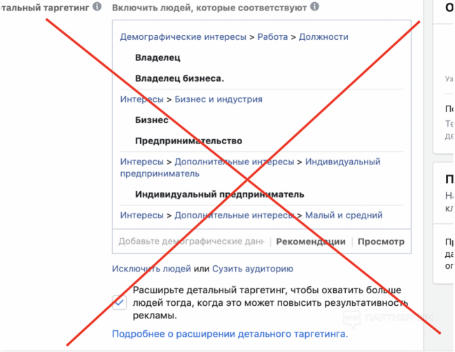 В настройке «детального таргетинга» не стоит выбирать по 50 интересов, много их них не актуальны для СНГ. 80-90% необходимой аудитории можно получить благодаря использованию 2-5 интересов, а другие – лишний балласт.