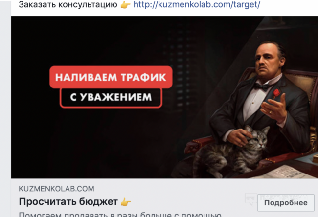 Facebook не зря всегда предупреждает рекламодателей, о наличии более 20% текста на рекламном изображении, «машина» Facebook будет сильно резать Вам охват в таком случае.
