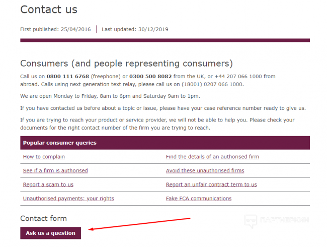 Чтобы написать письмо, заходим в раздел Contact Us на сайте FCA. Далее жмем «Ask us a question» и заполняем все необходимые поля:
