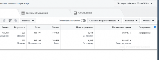 Для слива использовал клоаку от IM GROUP. Вайт пейдж - шоп на Shopify. Тема уже давно в ходу, но работает и сейчас. Дневной бюджет на адсет был 200-300$. Аккаунты жили от суток до недели. По спенду соответственно от 200$ до 1000$+