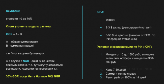 На первом этапе важно определиться с моделью оплаты. Ведь потом поменять ссылки на канале не получится. CPA-арбитражник получает деньги за действие (регистрация или депозит). В случае RevShare вебмастеру выплачивают процент от общей прибыли. Первая модель — это быстрый результат, а вторая — напротив, работа вдолгую. Рассчитать примерную прибыль можно с помощью схемы ниже.