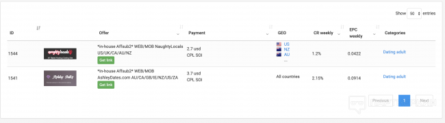 Выбрал оффер AshleyDates.com, так как коэффицент конверсии выше + выплата на $1 больше.)