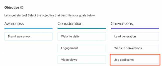 Как и в Facebook, создание кампании начинается с выбора цели. В соответствии с ней соцсеть будет показывать объявления тем, кто с большей вероятностью выполнит желаемое действие. Из необычного в целях — возможность находить кандидатов на вакансии (Job applicants).