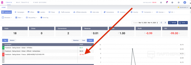 Если конверсия отобразилась в трекере - postback настроен правильно и можно начинать лить трафик, что мы и сделаем на следующих нескольких шагах!
