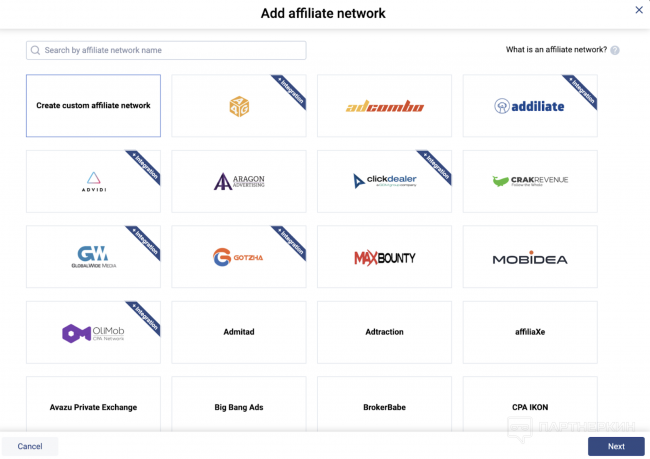 - В Voluum идем в affiliate networks ? new affiliate network ? create custom affiliate network