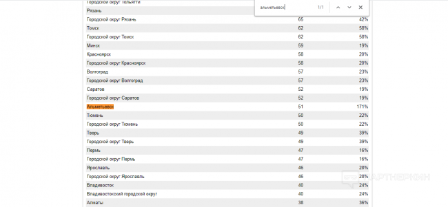 Показатель для Казани оценивается в 90%, а для Нижнего Новгорода, где жителей столько же, уже 33%. Здесь явно будут низкие ставки — его-то мы и берем в свой список. Идем дальше.