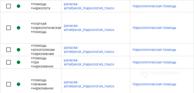 Переходим непосредственно к рекламе. Не бойтесь указывать в содержании сайта информацию о наркомании (в отличие от долгосрочных проектов, где этого делать не нужно). Мы хотим снять сливки и побыстрее. На сайте могут присутствовать слова «наркомания», «лечение», «реабилитация». Пока Гугл найдет и заблокирует аккаунт, сайт успеет принести пользу. Период до блокировки может длиться от недели до пары месяцев.