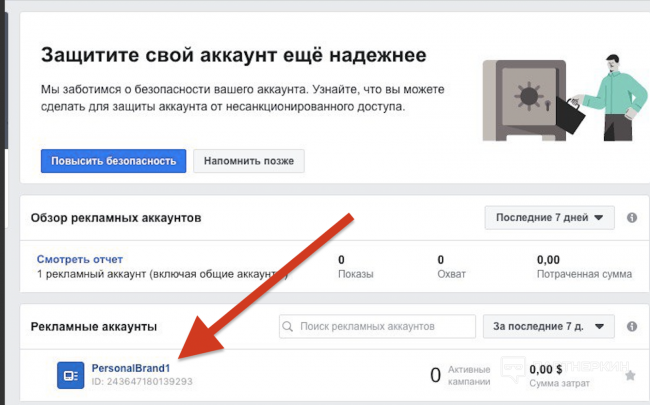 Business Manager ? Рекламный аккаунт (у меня на скрине PersonalBrand1)