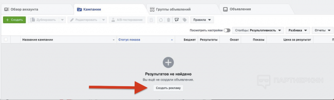 ? переходим в Ads Manager ? кликаем на “Создать рекламу”