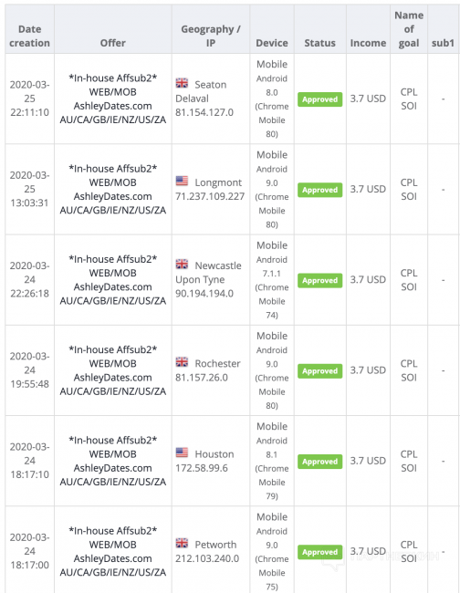 Мы решили тестировать оффер Ashley Dates из партнерской программы AffSub2 c ГЕО - AU/CA/GB/IE/NZ/US/ZA
