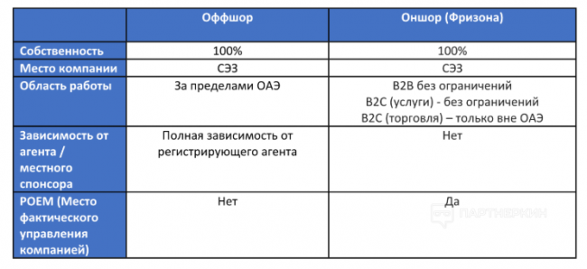 Для арбитражников и всех, кто зарабатывает онлайн, оптимально подходит тип компании «Оншор» в СЭЗ, или как ее иногда просто называют «Фризона». Так как они принимают платежи в основном от юрлиц или от физлиц из-за пределов ОАЭ, а отправляют платежи также юрлицам или физлицам (не важно, в ОАЭ или нет).