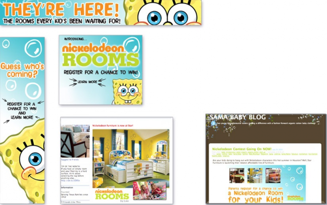 - Несколько раздач в розничных магазинах клиента в течение пары недель, в том числе два розыгрыша билетов на шоу Nickelodeon Story Time и спальный гарнитур Nickelodeon Rooms ценой в $3 000.