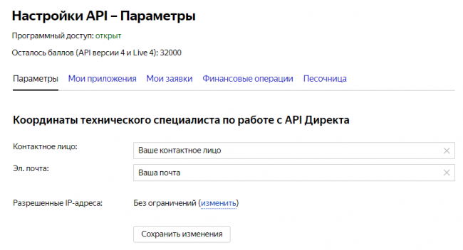 API Яндекс.Директа