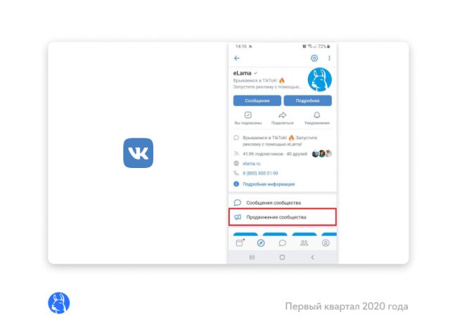 разрешил запускать рекламу для поиска подписчиков в формате скрытой записи с кнопкой. Сейчас опция доступна ограниченному количеству пользователей. Запустить рекламу можно со смартфона из раздела «Продвижение сообщества».