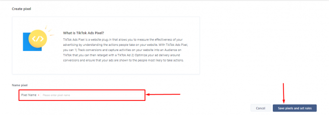 Даем название пикселю и нажимаем Save pixel and set rules («Сохранить пиксель и установить правила»).