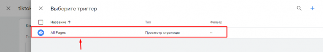 В качестве триггера выбираем «All Pages» (Все страницы).