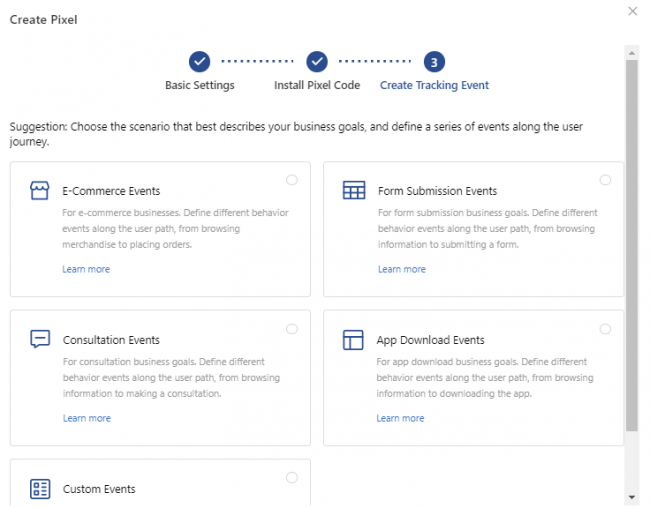 Важно! При создании пикселя вам потребуется сразу выбрать, какие конверсии будут настраиваться, так как в уже созданном пикселе создать их нельзя.