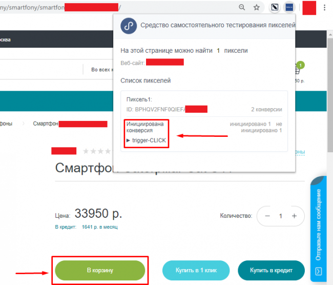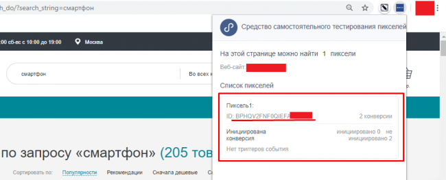 После его установки переходим на нужный сайт, кликаем на расширение и смотрим, сработал ли пиксель.
