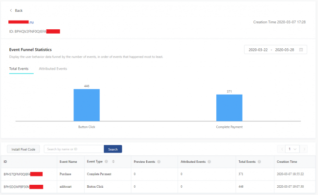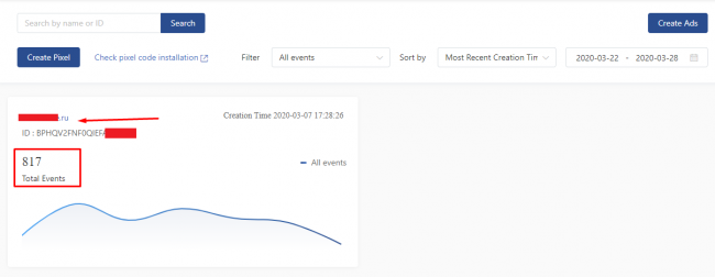 Чтобы посмотреть статистику по созданному пикселю, перейдите в TikTok Ads и выберите нужный.