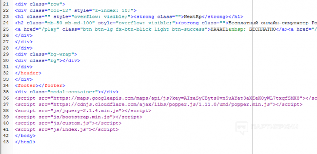 Как видим у юзера нет другого пути как просмотреть видос и кликнуть по кнопке. Хотя он может и закрыть страницу, но соблазн посмотреть и пощупать игруху все таки берет вверх и чел все таки переходит по кнопке. Код этой страницы чистый, состоит из 62 строчек кода.