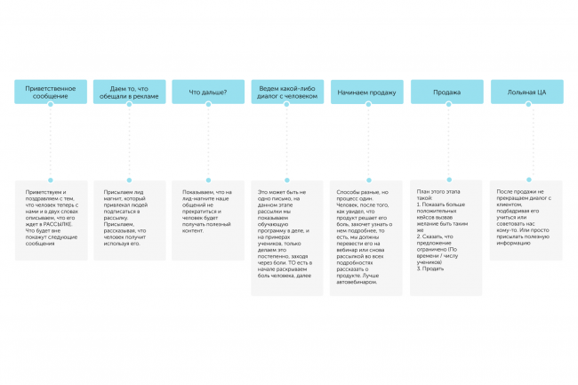 На первом этапе нужно постараться дать максимум ценности потенциальным ученикам, раскрыть продукт со всех сторон и предложить его попробовать. Так, он получает какой-то результат, втягивается в процесс, а дальше мы продаем ему оставшуюся целую программу.