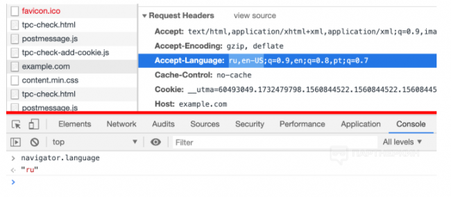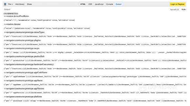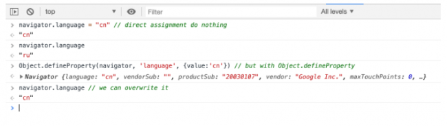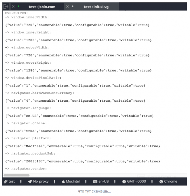 - перезаписать нужные нам значения прямо на странице через jаvascript же, после инициализации страницы, которую мы просматриваем. Самый простой в реализации, но самый отвратительный способ, т.к. сделать это незаметно действительно сложно. Как я покажу дальше, почти все антидетект-браузеры выбрали этот путь, чем подставили своих пользователей.