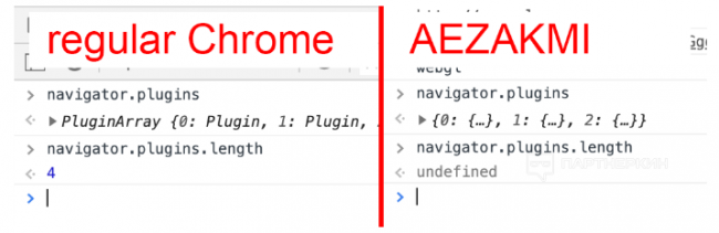 Таким образом любой сайт/антифрод просто вызвав одну строчку кода if( Object.getOwnPropertyNames(navigator)[0] ) alert('fake parameters detected');