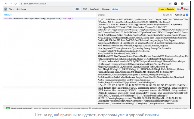 4) На каждой странице в глобальную переменную webglResponseStr помещается весь текущий конфиг профиля браузера целиком: