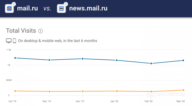 Вот, например, сравнение mail.ru и news.mail.ru: