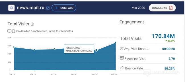 В целом трафик на новостных ресурсах вырос, причем особенно это заметно в сравнении с прочими сайтами. Возможно, для нас рост обусловлен именно этим фактом.