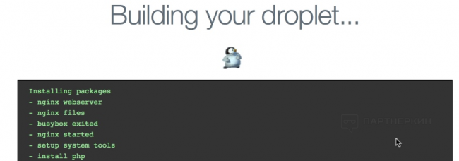 Ждем, пока droplet будут созданы. Прогресс создания отображается на панели Digital Ocean.