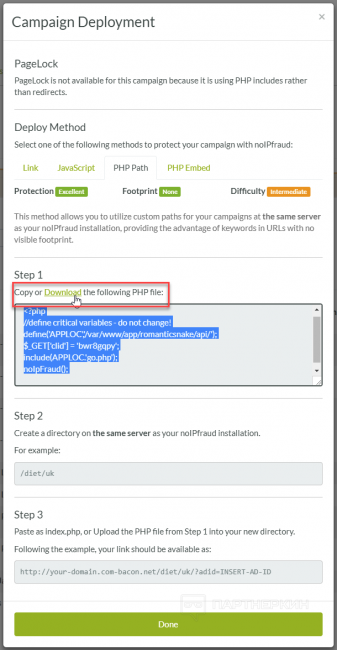 Важно! Основной и белый лендинги должны находиться на том же сервере, что и NoIPFraud.