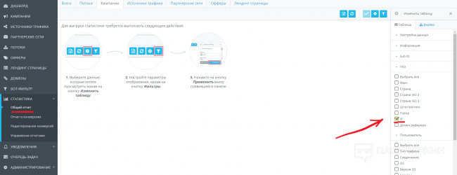 3. После того, как рекламную кампанию одобрят, заходим в раздел общей статистики и смотрим с каких именно ip был заход (скрин ниже). Выделяем их и копируем.