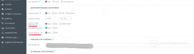 Распределить трафик с помощью правил вы можете также по многим другим переменным в зависимости от того, что вам нужно. Это может быть: страны/штаты/города, языки, типы трафика, ОСи, мобильные операторы и т.д. Кроме этого, есть функция скрытия URL, своих лендингов и воронок. Можно скрыть важную информация от представителей ПП или реклов.