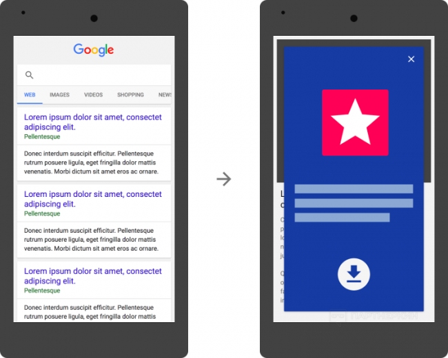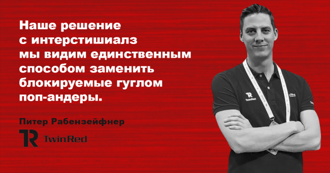Наше решение с интерстишиалз мы видим единственным способом заменить блокируемые гуглом поп-андеры. Формат подразумевает показ полноценной страницы по нажатию на линку, прямо перед тем как попасть на запрашиваемую страницу.