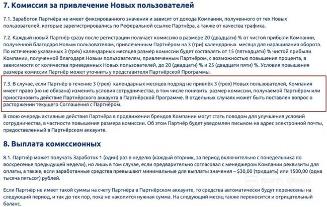 На практике это выглядит вот так: вебмастер работает по модели RevenueShare и выплату получает на аккаунт игрока. Следовательно, бухгалтерия каждый месяц бронирует деньги под выплату. Если по какой-то причине вебмастер не забирает деньги, то у бухгалтерии начинается финансовый ад. А теперь давайте представим, что таких вебмастеров будет много. «Замороженных» средств на счетах много. Просто так списать их нельзя, ведь в любой момент могут запросить вывод. Вот они и вводят подобные пункты, чтобы спокойно закрывать «невостребованные средства».