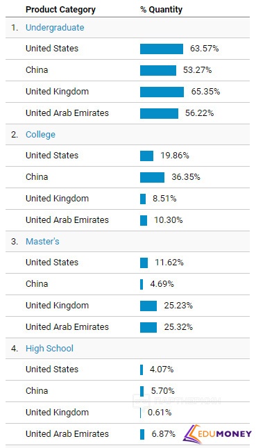 Время прочтения: 8 минут. Всем привет! Зарабатывать в арбитраже непросто. Особенно в нишах, где конкуренты тратят тысячи долларов на продвижение, рекламу и анализ клиентов. Тем не менее, если не идти вслед за большинством, а включить смекалку, то стать лидером вполне реально. И вот каким образом. Сперва напомним, что такое ниша эссе. Ниша академических услуг представляет собой разнообразные офферы для монетизации студенческого трафика. Основными ГЕО считаются США, Канада, Великобритания, Австралия и Новая Зеландия. Основная целевая аудитория это студенты в возрасте 18-24. Мужчины и женщины 50 на 50, которые предпочитают сидеть из телефонов в 55% случаев. Далее вы узнаете, какие особенности целевой аудитории в самых перспективных странах. В статье все данные по анализу прибыльности представлены за 2019 - 2020 годы. Проанализировав весь трафик, мы выделили ТОП 10 самый прибыльных стран: Статистика прибыльности по странам. Самой прибыльной страной остаются Штаты. Они составили 62,08% всех продаж за год. На втором месте Нидерланды, на девятом и десятом - Италия и Бельгия, которые считаются нетипичными случаями, ведь английский язык не является основным в данных странах, но несмотря на это прибыль составляет 7.59%, 0.87% и 0.86%. Нидерланды это пример успешного кейса со своими особенностями, больше всего прибыли принесли клиенты в возрасте 25-34 года. Студенты данного направления обучаются на англоязычных проектах или переводят английские работы на родной язык. Канада, Великобритания и Австралия занимают соответственно третье, пятое и седьмое места, считаясь классическими направлениями для ниши. Канада принесла 4.8% прибыли, Великобритания 3.67% и Австралия 1.91%. И это не удивительно, ведь в данных странах английский язык родной и образование во всех учебных заведениях осуществляется на английском. Также, это всемирно популярные направления, после США, для получения качественного образования. Страны ближнего Востока, такие как ОАЭ и Оман, в короткие сроки смогли войти в десятку самых прибыльных страх из-за стремительного развития инфраструктуры и в частности образования. Прибыль из ОАЭ составляет 3.98%, что делает это ГЕО одним из самых перспективных, а прибыль с Омана - 1.14%. Единственный представитель из Восточной Азии в самой прибыльной десятке - это Китай. Данная страна на государственном уровне выделяет большие бюджеты на стипендии для иностранных студентов по всему миру и проводит обучение естественно на английском языке. Прибыль от студентов в Китае составляет 3.14% от общей прибыли за последний год. Так как США это самое прибыльное ГЕО и таким было за всю историю ниши, со своими особенными характеристиками аудитории, ему стоит уделить особое внимание и приоткрыть занавес аналитики за последних год. В американских университетах у студентов нет возможности списать из интернета или взять работу у старшекурсников, а темы дипломов меняются каждый год и работы проходят тщательную проверку на плагиат. Ученики ищут варианты для заказа письменных работ и они готовы платить немаленькие деньги за них. С каждым годом количество студентов в США растет, что мы можем наблюдать на табличке из статьи про Статистику окончания колледжей: Процент американцев старше 25 лет с 4 годами колледжа 1940-2019. Статистический прогноз образования до 2027 года, размещенный на сайте Мин