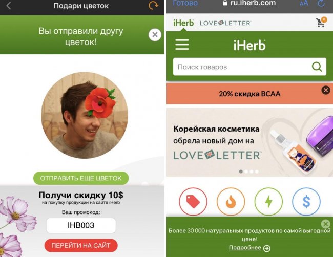 В рекламных кампаниях акцент на заботу о себе и о близких, несмотря на изоляцию, также может принести положительный отклик от аудитории. Например, iHerb запустил в «Одноклассниках» кампанию, где пользователи могли дарить друг другу виртуальные подарки в виде цветов. После отправки подарка пользователь дополнительно получал промокод на скидку $10 на заказ в маркетплейсе и ссылку на сайт интернет-магазина. Это хороший пример того, как бренд может помочь людям проявить внимание и заботу о близких.