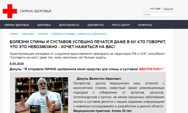 Возьмем за пример прелендинг, посвященный средству для спины и суставов: