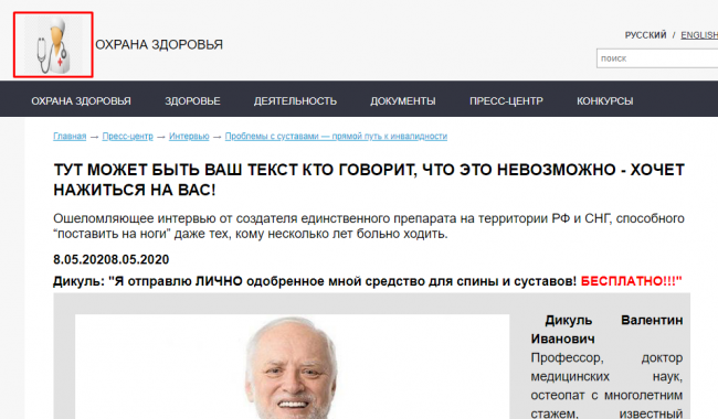 Сохраняем, и вот, теперь кнопка "Охрана здоровья" ведет нас на сайт Gambling.pro!