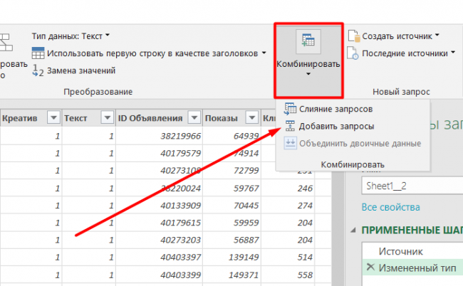 Объединяем в Power Query данные из трех рекламных кабинетов