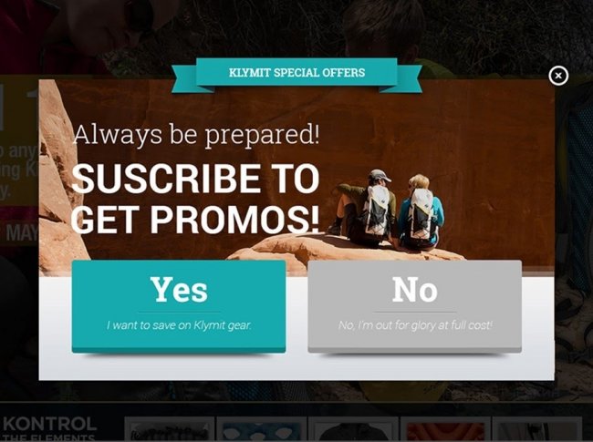 Можно одновременно использовать эффект приманки и эвристику доступности, как на примере ниже. Когда пользователю предлагают два варианта ответа, один из которых «нет», человек автоматически выберет «да» даже если он вообще не собирался делать выбор.