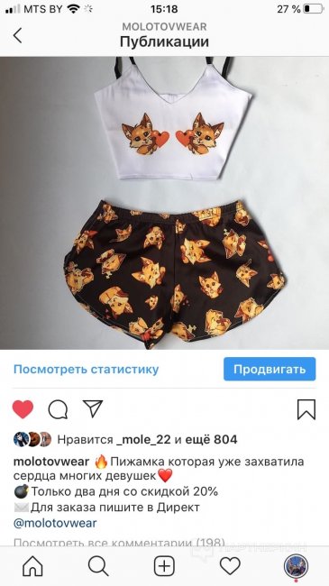 У меня 5-8 продаж с одного аккаунта. ВК и Инстаграм дают 10-15 продаж в день, когда идет реклама. В целом, около 150 пижам в месяц выходит. Вообще весь мой бизнес прозрачен, магазины в свободном доступе. Можно в Инстаграме посмотреть спрос и активность, все станет понятно.