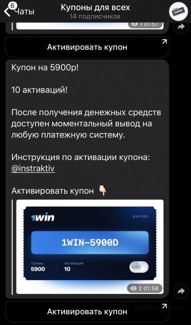 Девушка: смотри, вводишь в поиске телеграм «купоны для всех» и в этом канале публикуют купоны на разные суммы, и нужно успеть их активировать, потому-что их ограничено число даётся.