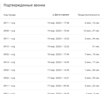 И получили 48 целевых звонков со средней длительностью около трех минут (качественным считается звонок, который длится больше двух минут). Средняя стоимость звонка не превысила 1000 рублей.