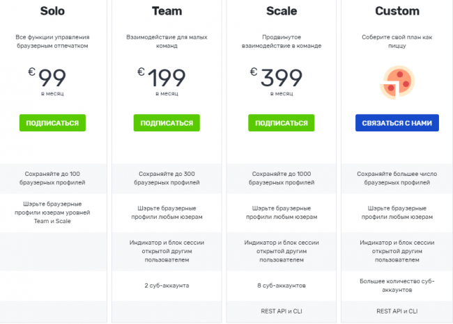 У мультилогина 4 тарифных плана, один из которых вы можете составить самостоятельно: