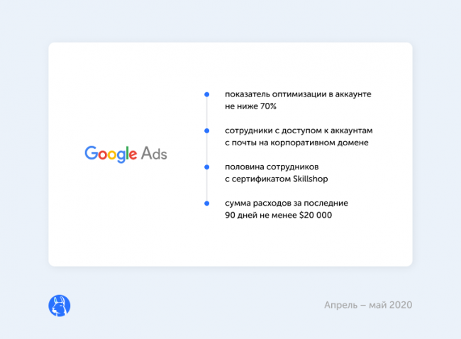 приостановил анонсированные ранее изменения в условиях партнерской программы до 2021 года. Партнеры Google Ads сохранят текущий статус и партнерские значки. Агентства, которые захотят получить значок в 2020 году, смогут сделать это в соответствии со старыми правилами.